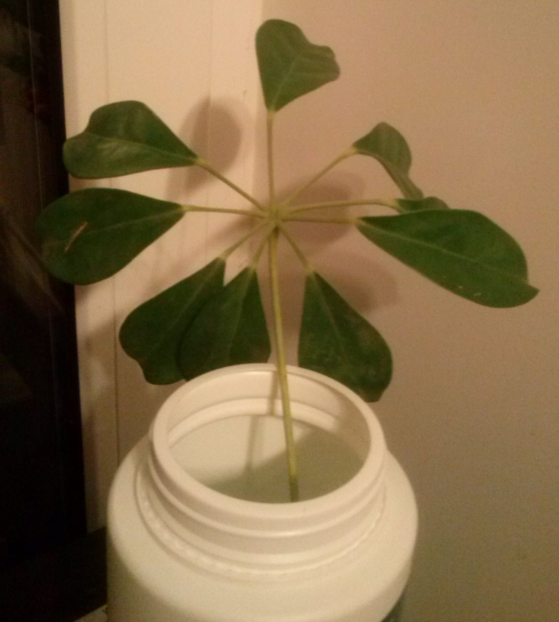 Шефлера. Корни даст. Но в рост не пойдет, точки роста нет. Будет так и стоять одной веточкой наращивать корни. Я пробовала...