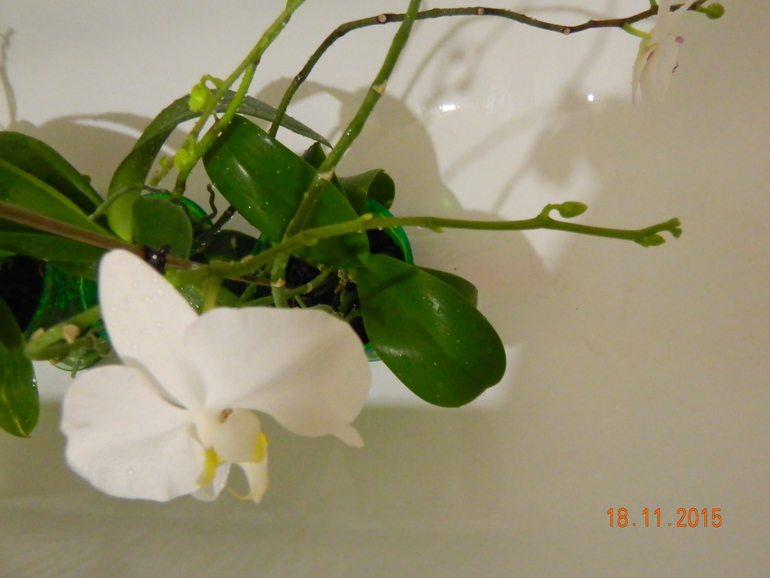 Очень советовали в магазине. Я везде читаю, что цветоносы надо обрезать только после того, как они засохнут. Тем более новые бутоны начинают развиваться прямо следом за отцветшими, буквально через несколько дней. Все орхи стоят на южном окне, но из-за балкона прямых солнечных лучей на них нет. В общем-то самое удачное окно у меня для цветов.