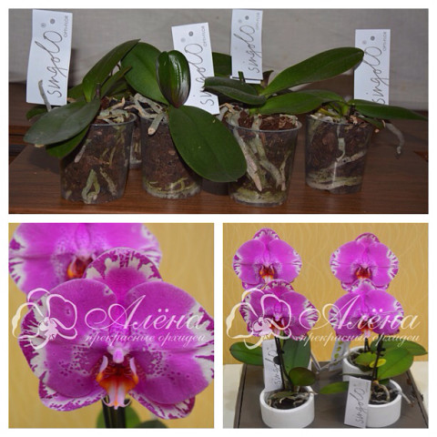 Там, где маленькая розетка и один большой цветок - это Phalaenopsis Singolo. У меня он вот такого цвета (фото сделано продавцом Алёна-Прекрасные Орхидеи):