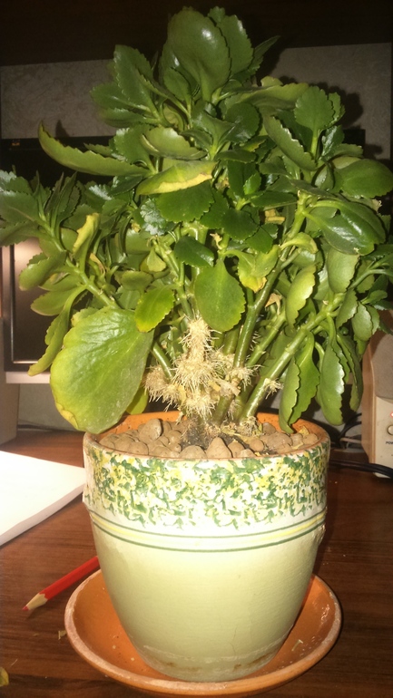 На мой взгляд он у вас еще вполне прилично выглядит! А листики надо просто обрывать грубо говоря голые стебли оставлять? Так тоже не очень красиво, у меня сейчас примерно так и есть они вытянулись стебли длинные довольно толстые а листочки редкие и все равно не цветет. Я читала что каланхое цветок короткого дня я так надеялась что он зацветет скоро