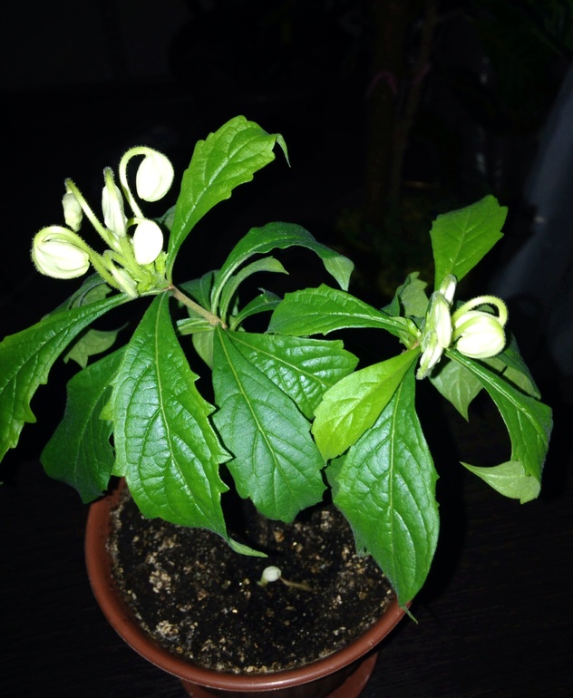 Клеродендрум Музыкальная нотка набрал бутоны, но до полного роспуска дело не дошло, силенок не хватило: