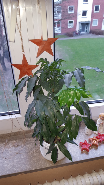У меня он стоит на большом южном окне, поливаю сейчас раз в неделю, иногда и реже ещё, но у нас воздух не сухой, влажность нормальная, потому этого ему вполне хватает, листья не желтеют. Да и вообще никаких хлопот он мне не доставляет-растёт как то сам по себе. Но подробности лучше почитать в интернете, ведь имя красавчика теперь известно))