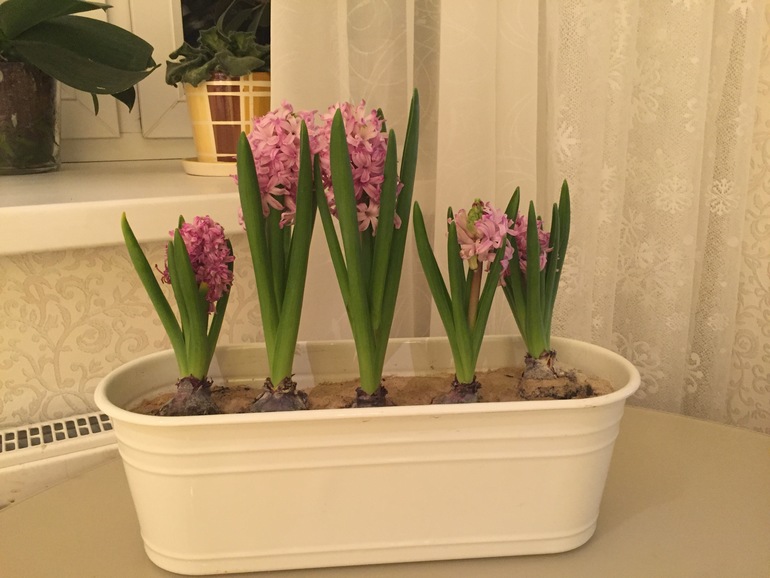 ХвастушкиВ конце октября посадила луковицы, держала в холодильнике. 1 января достала уже такие прилично проросшими. На 27 день после переноса в тепло первый цветок начинает зацветать. Интересно, 14 февраля будем с цветами, или уже отцветут?..
