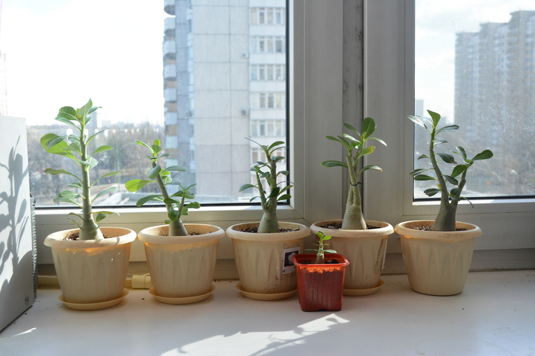 https://www.babyblog.ru/community/post/flowers/3166017 тут фото, что было осенью. и не большой эксперимент. часть цветов в зиму пересадила в более просторные горшки и не смотря на то, что везде написано, что адешки любят тесноту, пересаженные за зиму подросли сильнее. по этому по весе пересадила все.ну и обрезала в конце февраля веточки, а то уж больно вытянулись вверх.