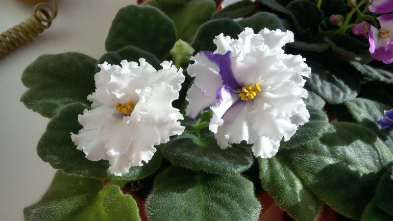Эта фиалка раньше цвела белым цветом, а теперь у нее появились сиреневые пятна.