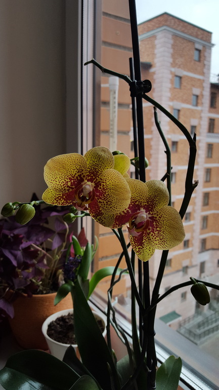 Красивые какие, веснушчатые 😊 Фиолетовая в одном горшке столько стебельков?