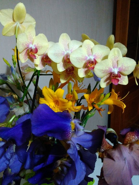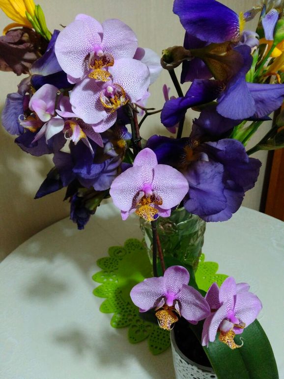 ХвастушкиНачали радовать меня мои орхочки по чуть-чуть...месяц не была дома, приезжаю - а у меня на подоконниках букеты!!!шапки!!! Воооот....