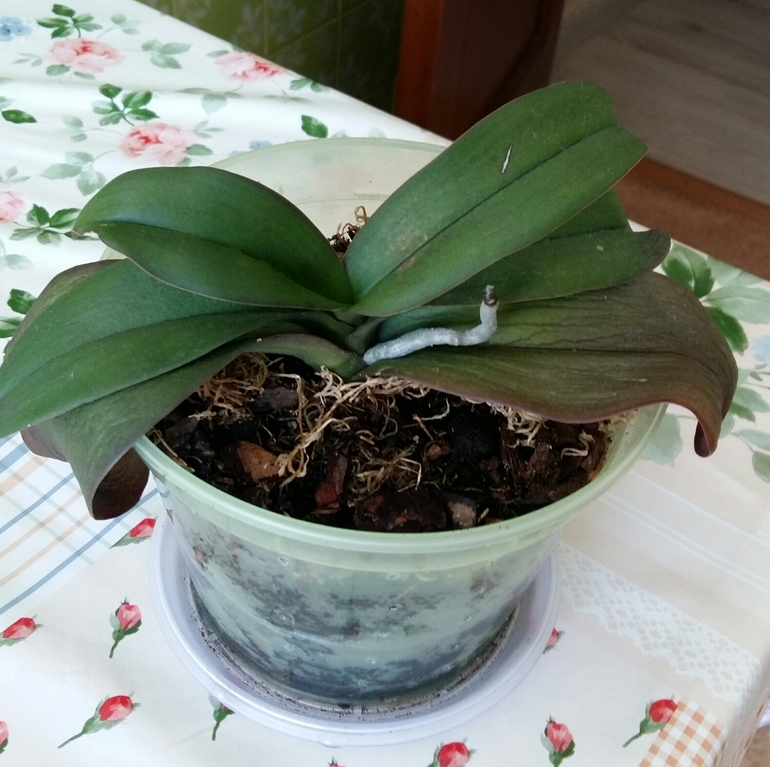 1,5 года назад купила уценку мини,с цветками, ждала когда отцветет , что бы пересадить(а не надо было ждать) в итоге так и не дождалась пересадила, корни все сгнившие были шейка подгнившая, все я это дело отрезала, почистила, присыпала и посадила в кору (а надо было в смесь для орх, в которой у меня все растут). 1 корешок остался. Через пару мес наконец-то перестала цвести но и сама не росла а сохла нещадно в коре этой. Поменяла на смесь для орх , полезли корешки, их уже штук 5-6 все хорошие, но прошло 1,5 года и она в не очень состоянии, листья новые переодически пускает. На фото два нижних листа мертвецы конечно(давно такие), но я их не отрезаю. и она мокрая т.к только полила, я ее не заливаю однозначно, накануне вообще недели 3 не поливала , т.к у нас были дожди и солнца вообще не было. На окне их стоит 3 орхи, те другие чувствуют себя замечательно.