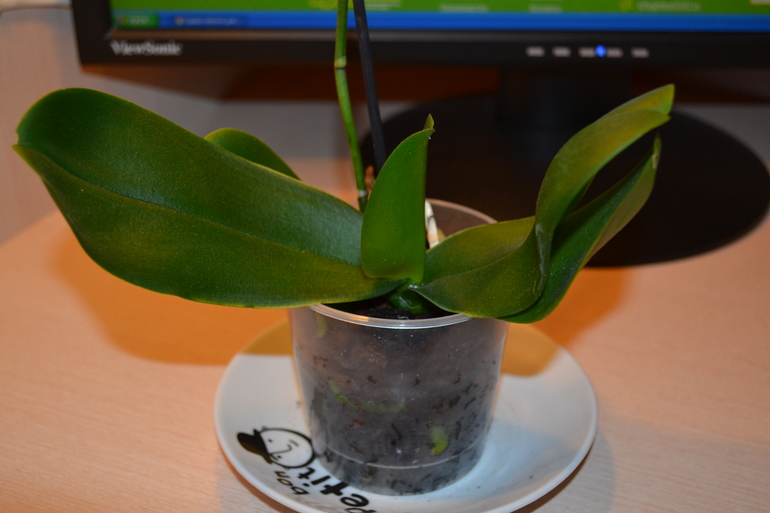 Сейчас он такой. Опали цветочки, но появился новый лист и вроде корней больше стало.