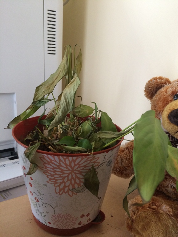 Девочки! Срочно надо спасать цветок. Кажется, это спатифиллум. Передали мне, чтобы спасти и я не знаю как? Пересадить, удобрить, постричь? Спасайте!