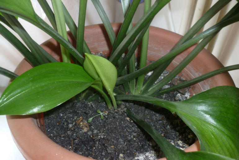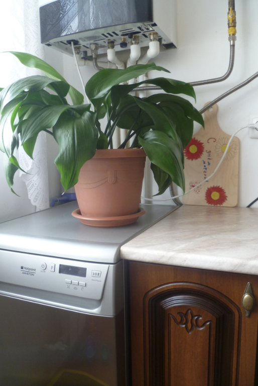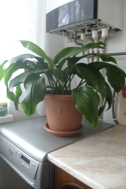 Далее эухарис. Мой самый любимый цветок на протяжении долгих лет. Только его я не отдала при переезде. Но он совсем не хочет цвести. Пустил детку. Может горшок слишком большой для него?