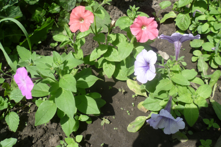 Петунии! Очень нравятся, но я как не опытный (совсем не опытный садовод) посеяла в мае. И вот две недели назад они зацвели. В следующем году буду в феврале как положено сеять.
