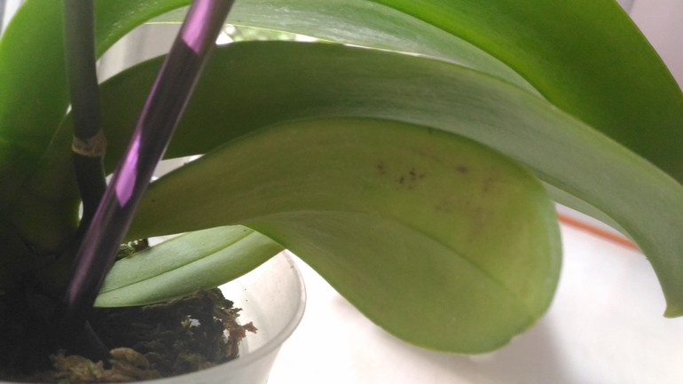 На листе увидела темные пятна, и на цветах тоже. Цветы начинают опадать.