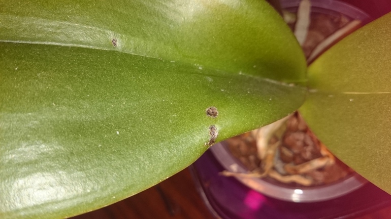 SOS! Помогите цветику!Купила не глядя.. Практически схватила на лету, только корни глянула. Прошло три дня с покупки, и сегодня удосужилась рассмотреть. И вот! Пятна сухие, гниения я не вижу. Но меня смущают пятна на шейке. Что-то надо делать?