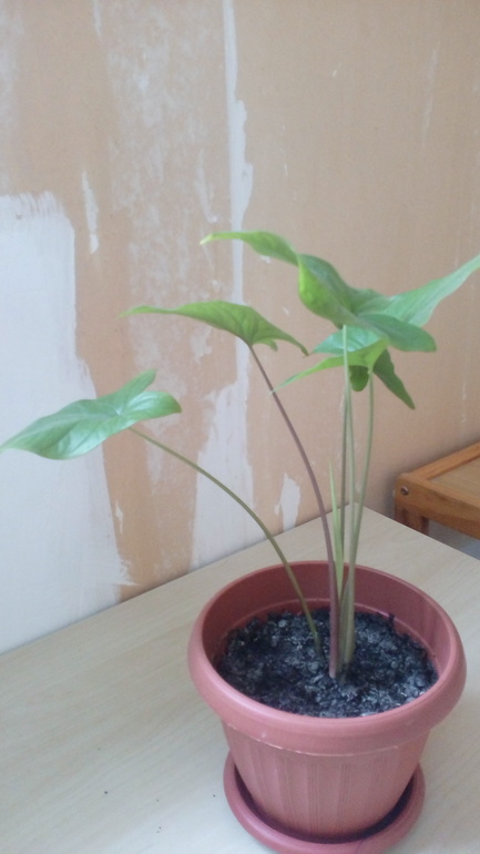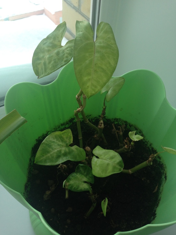 Добрый день! Это Сингониум, один из видов (не очень виден расправленный лист), посмотрите здесь: http://mrsad.ru/dekorativnolistnue/singonium.html