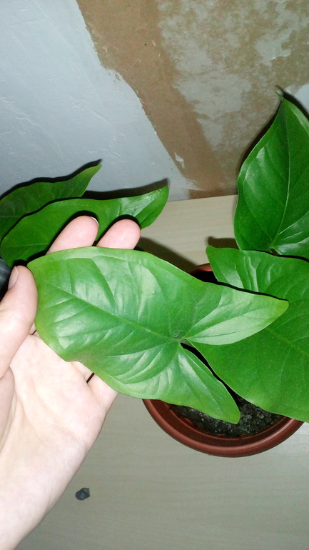 Это S. podophyllum - Сингониум ножколистный, один из самых распространённых видов комнатных Сингониумов: https://commons.wikimedia.org/wiki/File:Starr_070124-3836_Syngonium_podophyllum.jpg