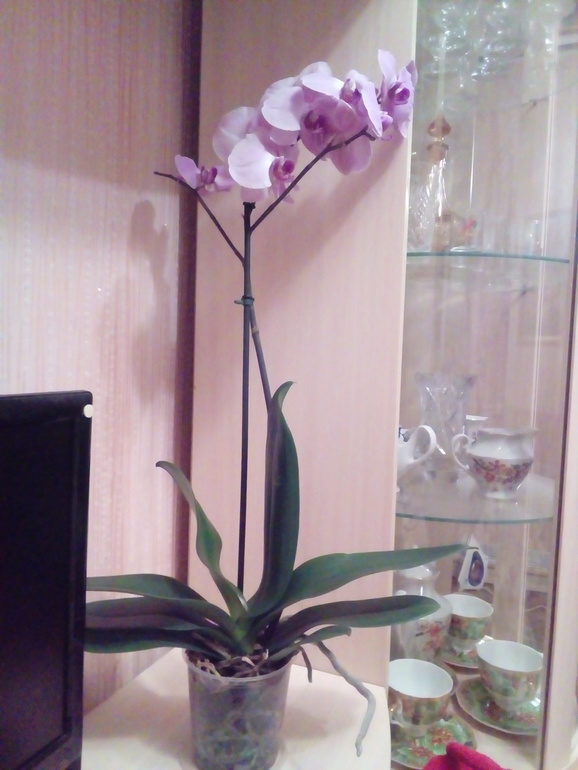 Красивая орхидея! Я их тоже очень люблю)) я купила ещё специальный вазон для орхидей с двойным дном, чтобы между вашим прозрачным и керамическим (например) было пространство для воды. Просто вставить орхидею в этом прозрачном вазоне в керамический. Так же купила подкормку для орхидей (покупала в обычном гипере). Моя не любит холод и батарей (сухой воздух). Любит много света. Поливаю только тогда, когда корни на дне подсыхают, становятся не такие зеленые. Опрыскиваю корни из пульверизатора. Удачи