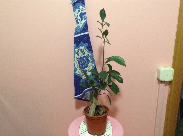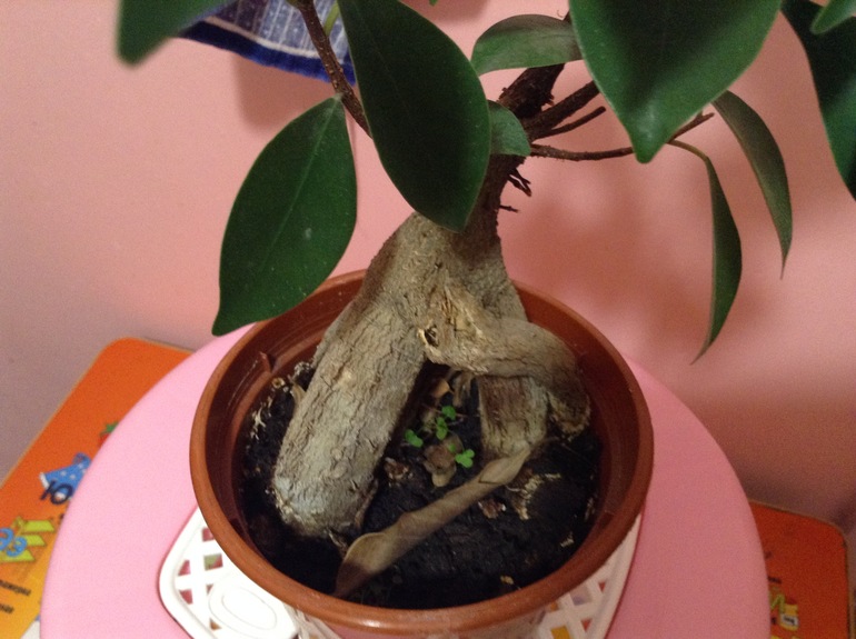 Фикус микрокарпа. Горшок нужен широкий и плоский, ветку спокойно можно обрезать и укоренить в воде))) любит когда светло и нет сквозняков, полив умеренный по мере высыхания почвы. А вообще в интернете можно найти про его уход много полезной информации. Удачи в выращивании
