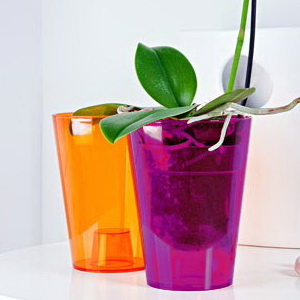 Орхидеи растут в покупных прозрачных пластик. горшках, ставлю в кашпо. Так и наливаю воду почти до краев пластик.горшков. Стоят в воде около 2-4ч., потом воду сливаю.