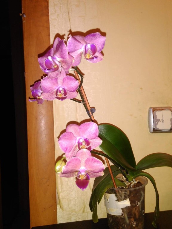 У меня орхидея на подоконнике стоит. Сквозняков не любит. Поливаю тоже замачиванием тогда, когда вижу что кора уже сухая, а корни светло зелёные. Но только в заранее отстоянную воду. Всегда в бутылке стоит отстаивается для полива. Один раз в 2-3 месяца подкармливаю жидким удобрение. Покупаю "Жидкое удобрение Цветочное счастье Орхидеи" от Фаско. Цветут мои орхидеи с ноября по май. Летом обычно сбрасывают цвет.