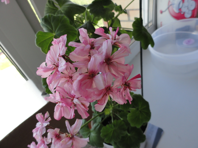 Красная (или алая точно не помню) и розовая пеларгония и душистая герань (чем пахнет не могу сказать).
