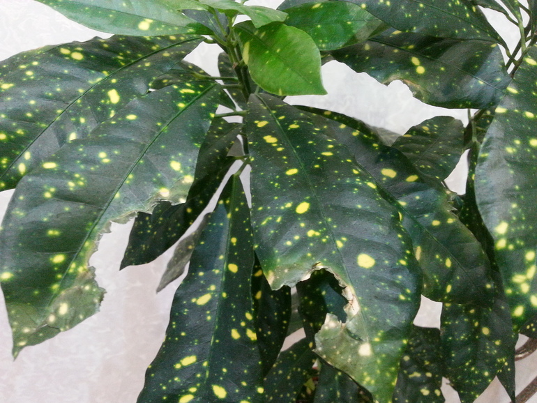 У этого не было раньше такой проблемы, начали сохнуть и трескаться и ломаться листики. что не так делаю?