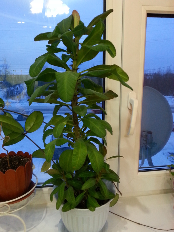 это молочай Мила. у него проблем нет. Вопрос: нужно ли ему верхушку прищепнуть или их не формируют? и почему не цветет? везде пишут круглогодично цветет..