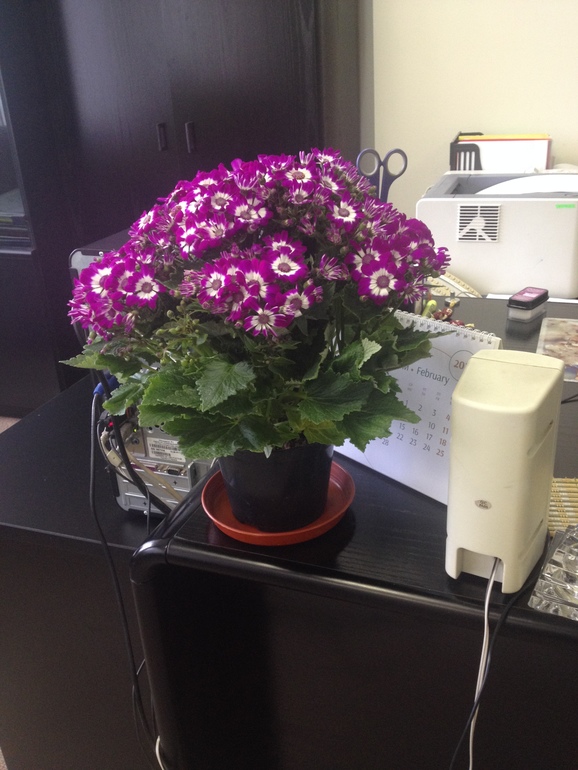 да перед 8-М подарили и так цветет, это 1-1,5 мес он будет так цвести, но очень прихотлив, на работе в кабинете тепловато и он начал вянуть) я уже и брызгала и поливала, земля влажная, но ему все равно что то не так(