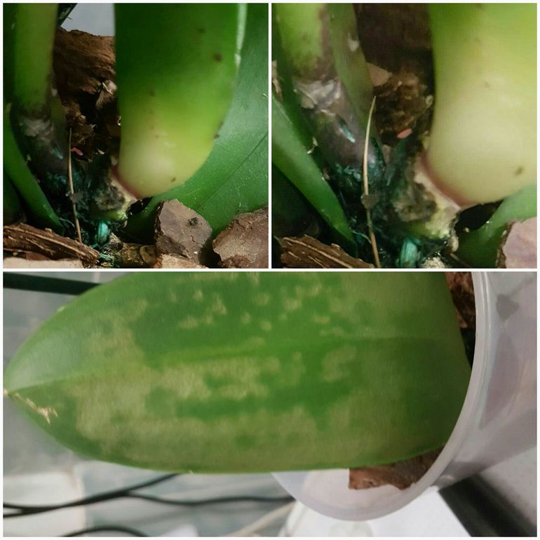 вынуть из горшка,просушить все гнилое сухое обрезать, присыпать углем или корицей. посадить в новую сосновую кору, выдержать 5-7 дней без полива