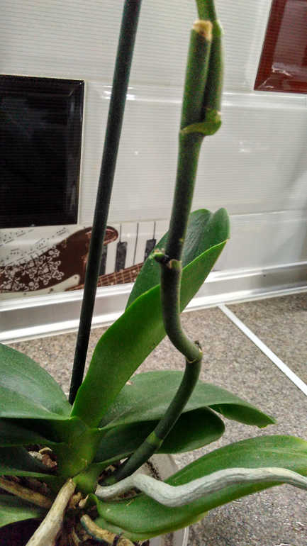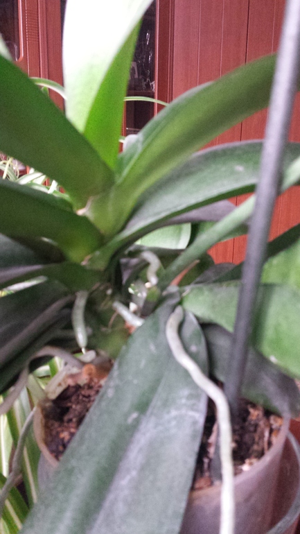 2) Муж на 14-е февраля купил фаленопсис (конечно же), но покупал вечером. Выбирал лучшее из худших. Принес и я полунаметанным:) глазом определила, что корней живых там нет. Имея опыт наращивания корней у "Абалденно-красивых-неАбычных" синих (читай: крашенных) фаленопсисов