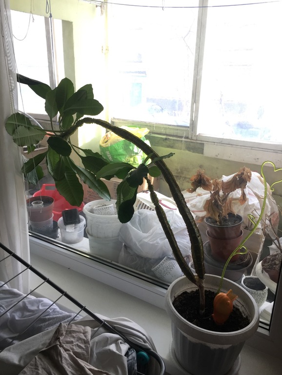 Всем доброго времени суток ! Имеется такое чудо , и что с ним сделать ?смотрю в интернете - ствол ровный , маленький , листья крупные . А у меня такое чудо... может его можно как то переукоренить?