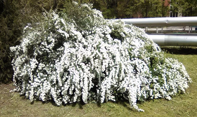 Помогите опознатьДевочки, у нас по городу и у мужа на работе цветут кусты. Красота сказочная! Может кто-то знает, как называется это чудо? У нас все ходят, любуются, но никто не знает. Цветущие кусты совсем не пахнут.