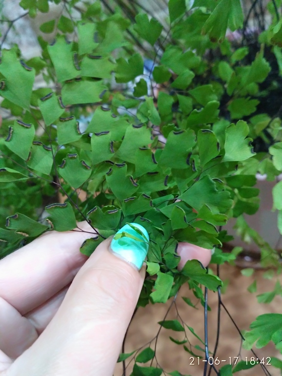 SOS! Помогите цветику!Подарили папоротник, а на обратной стороне листа какие-то непонятное черные точки. Подскажите пожалуйста это болезнь или споры? Фото прилагаю. Заранее всем спасибо.