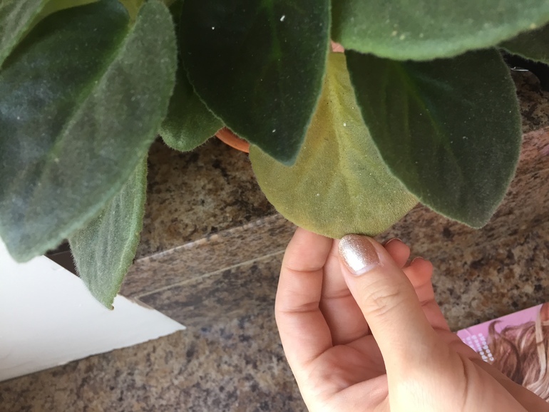 2. У этих на нижних листьях белые разводы, хотя листья крепкие и цветут обе. Это болезнь? Как лечить? Или уход поменять? Тоже были взрослые обе сразу