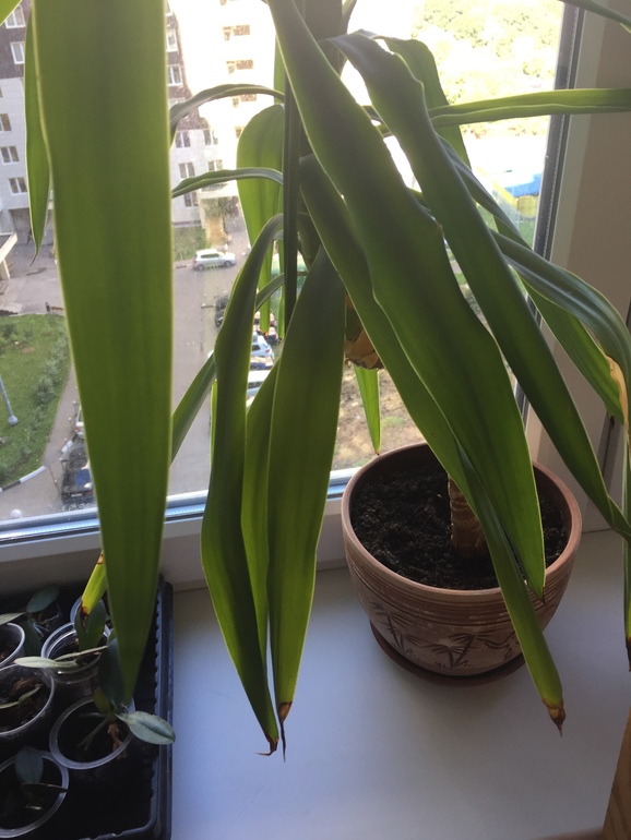4. Юкка - сохнут кончики. Отдали года 3 назад большое, я его ни разу не пересаживала, боюсь загубить. Или уже пора? Как это сделать и как спасти кончики?