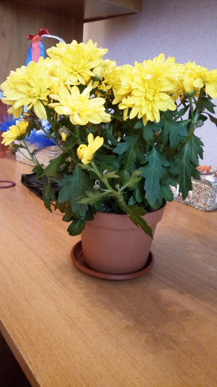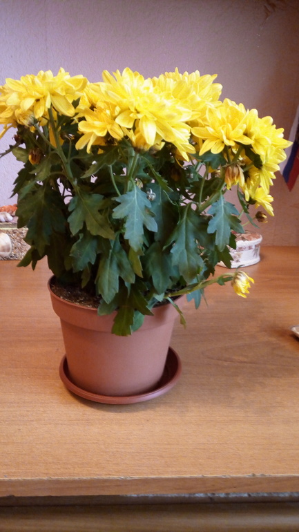 Мне подарили цветок хризантему. Все было хорошо , но потом я заметила , что листья повисли. Что делать? Как ее спасти? И ещё. Расскажите все как ухаживать за ней, сколько раз поливать, как определить , что она уже отцвела. В какую землю потом пересаживать? Когда можно подкармливать и сколько раз и чем? И заметила что на листьях коричневые пятна, что это такое. Надеюсь на вашу помощь. А и ещё. Ничего что хризантема стоит на подоконнике и рядом батареи которые топятся?