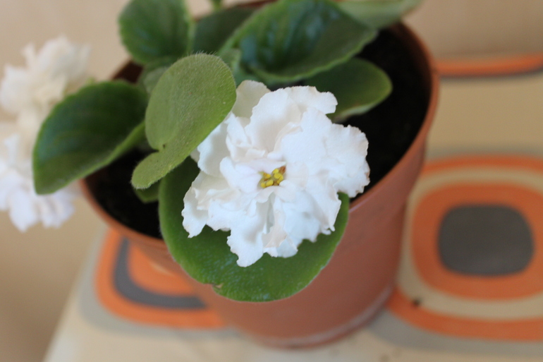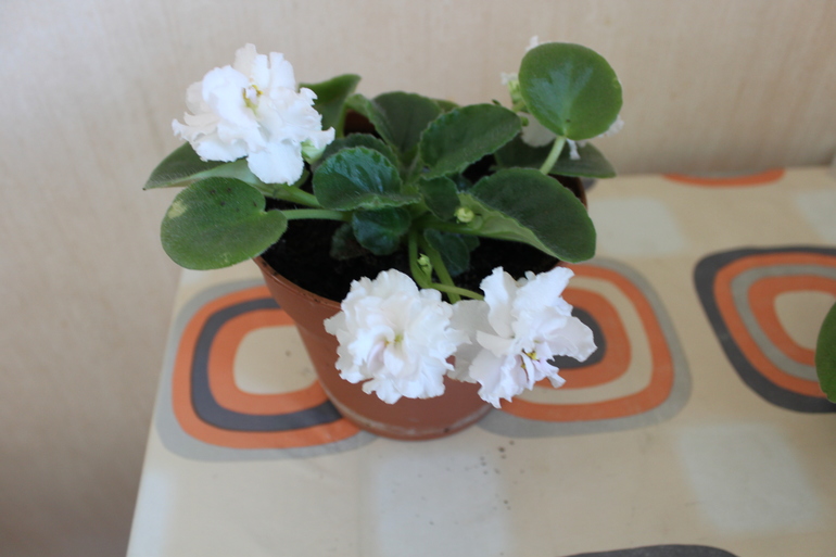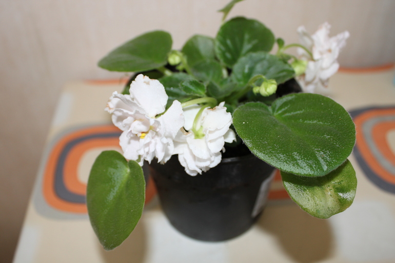 1. Белая махровая - 200 р. есть 2 цветущие фиалочки.