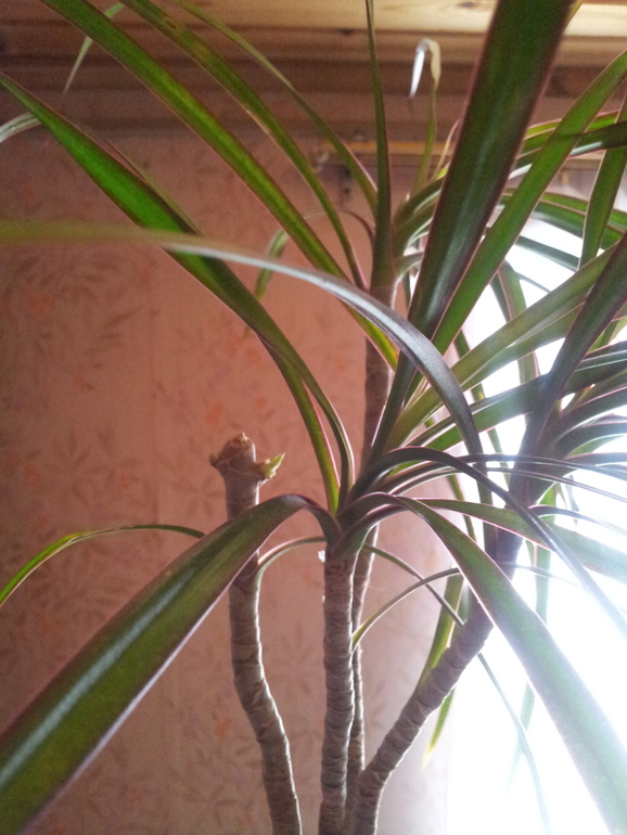 У меня драцена периодически, тоже сбрасывает листочки. Но они сначала сохнут. Чтобы слишком длинными стебли не становились, я решила обрезать их по очереди. В месте среза уже растут новые ответвления) Поливаю не очень обильно раз в четыре дня. Отрезанный отросток укоренила и тоже высадила.