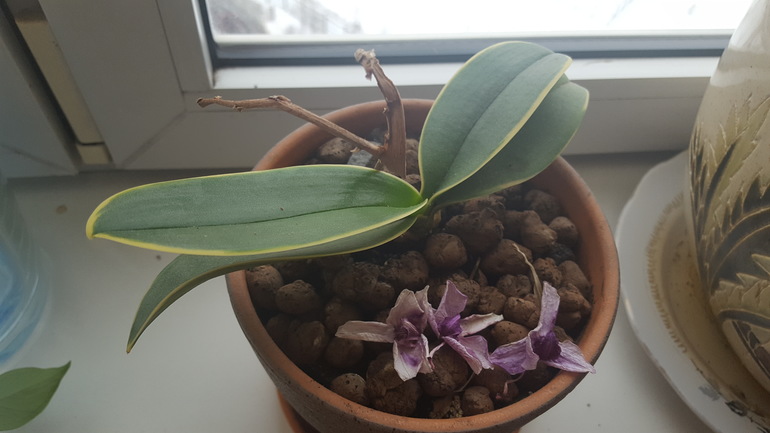 Модераторская (сюда пишут только модераторы)Подскажите, пожалуйста, забрала у отца мужа вялую и в ужасном состоянии орхидею, очень жалко стало его целыми днями нет, никто не ухаживает! Опыта с орхидеями не было, но я его уже почти совсем сухого пересадила (убрала мертвые корни) в новенький горшок. Он более и менее пришел в себя! Даже отцвел. Но потом мне рассказали, что орхидеи держат в стеклянных горшках! теперь незнаю, что и делать. Решила заняться орхидеей серьезно т.к. цветок мне понравился. Помогите определить, что за сорт?