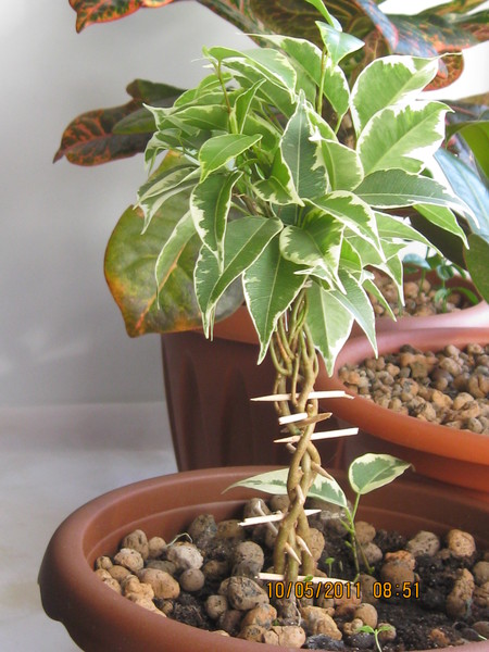 пересадите в емкость побольше, эти фикусы быстро растут и разрастаются, тем более скоро весна, они прям как на дрожжах растут.