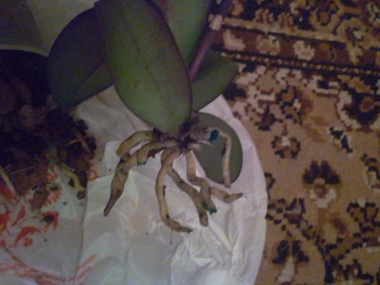 Всё что осталось на сегодняшний день, пришлось ещё немного подрезать плохие корни. Чуть смазала зелёнкой места срезов. Сейчас положила на окно без грунта, корням наверно ещё света не хватает. Были закопаны в коре