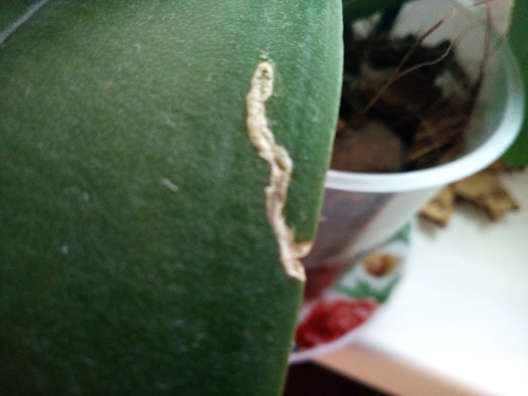 Так вот новый экземпляр тоже ,со слов продавщицы, с сюрпризом.При мне продавец вынула фаленопсис из горшка,срезала подгнившие корни,опрыскала фитовермом от макушки до хвоста. И продала мне цветочек, новый субстрат и ампулу Фитоверма.Дома я любовалась розовыми цветами,пока не заметила,что с обратной стороны цветов кто-то расселся.По описанию в интернете я легко узнала мучнистого червеца.И с присущей мне маниакальной увлеченностью принялась спасать цветок.Я намочила ватную палочку спиртом и снимала самок паразита с цветов,протирала палочкой пазухи и выковыривала их оттуда зубочисткой.Несколько раз опрыскивала Фитовермом. Мучнистых паразитов я больше не видела,но листики орхидеи по прежнему кто-то жрёт,тот кто оставляет ход на листе,как крот в земле.Кто это? Как с ним бороться?Помогите мне пожалуйста,а то муж надо мной издевается уже.