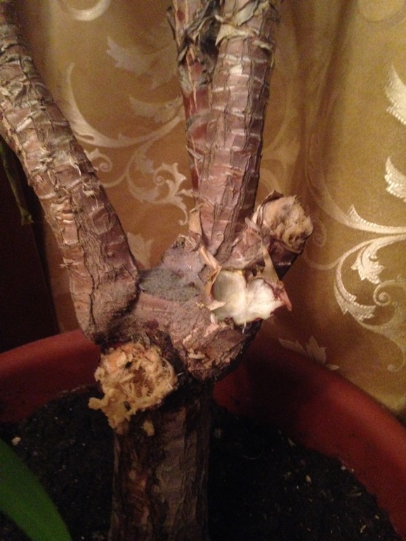 SOS! Помогите цветику!Юкке идёт 11 год и вот случайно дотронувшись до одного из стволов узнала, что он пустой внутри. А у основания сгнил. Таких оказалось три ствола. Что делать?