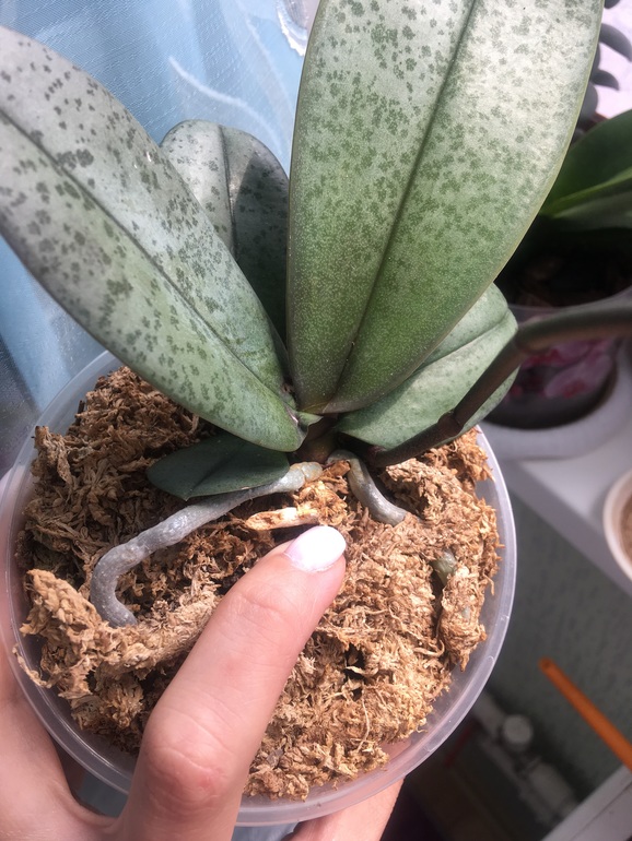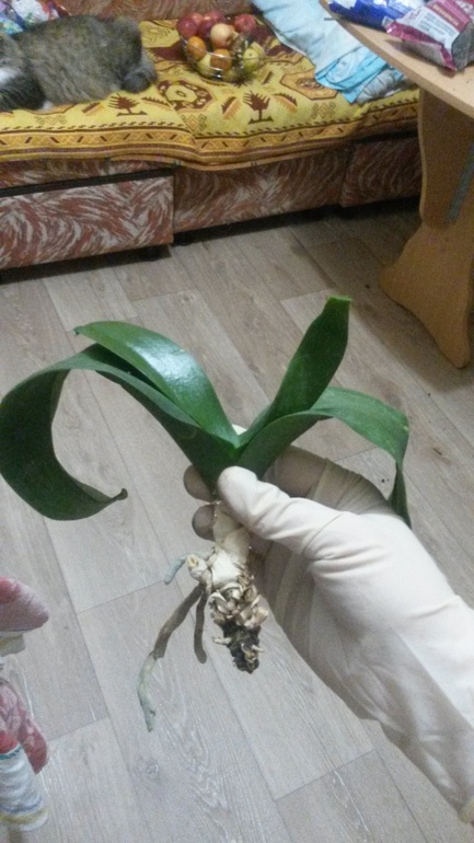 Не обнадеживайте! Возможно, кто-то что-то там спасает, но там бывает живой ствол хотя бы с одной живой спящей почкой, которая дает новую розетку. Здесь же живого ничего нет, кроме остатков корней, ствол иссох и давно мертв... Мне жаль, но, кажется, Ваша орха погибла и давно. Не расстраивайтесь!