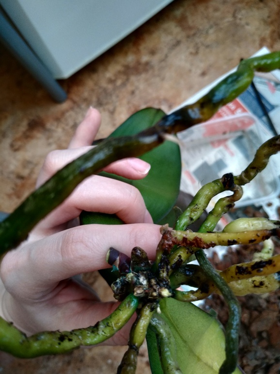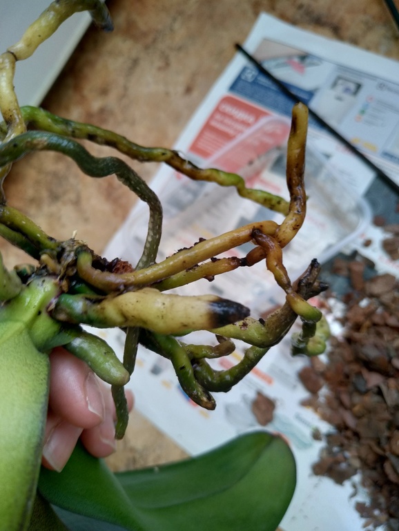 Модераторская (сюда пишут только модераторы) Девочки, добрый день! Купила на днях уценку. Вся залитая была. Посадила в кору. Цветонос срезала. Нижние листья стали стремительно вянуть, с одной стороны желтеть. Достала, замочила в фитоспорине. Прикладываю много фото. Болеет чем-то ? Настораживают черные кончики некоторых корней. Помогите !
