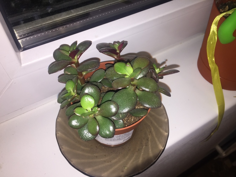 Денежное дерево у нас на работе на восточном окне у стены...вообще бледное. А это красивое такое яркое.