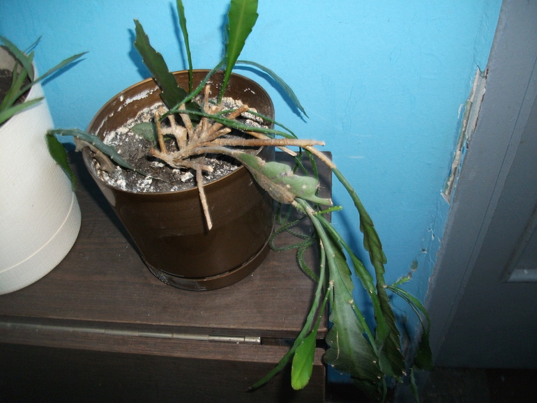 Вот у меня такая же фигня была и он всё хуже и хуже был. Я бы на вашем месте оторвала здоровые зеленные черенки, подсушила сутки (только не на окошке) и вгрунт воткнула. Он у вас никогда не цвёл?