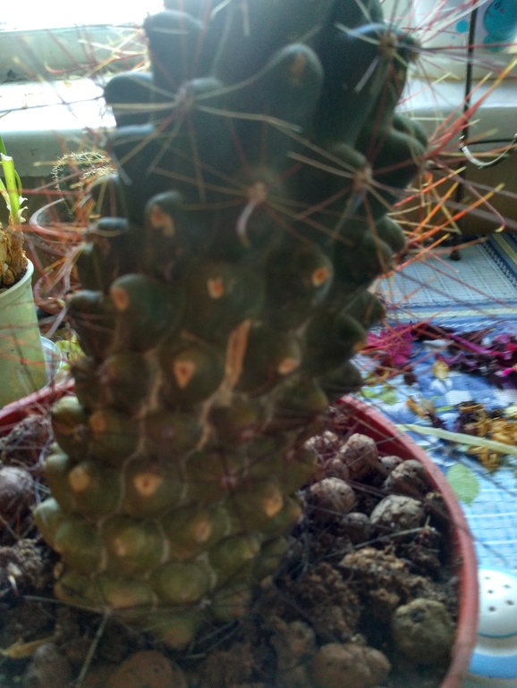 Доброго вечера! Подскажите что с кактусом и можно ли ему как то помочь? мне достался уже этого размера года 4 назад, через год где то начал терять иголки и крениться,в прошлом году пересадила-корешки торчат суховатые и черные,как усики. Потом начал на месте иголок белеть внизу и лопнул(( сверху посмотришь вроде ничего,а нижняя часть...но не гниет нигде. Когда пересаживала прямо поставила-опять накренился... можно что то сделать? Это от солнца или воды много/мало? Так жалко его😭