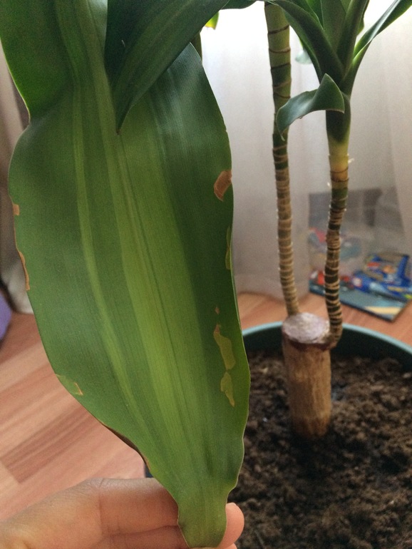 SOS! Помогите цветику!Девочки, добрый день! Я к вам за советом и помощью, у меня растёт драцена уже 8 год, можно сказать мое детище, очень мне дорога. И вот не понимаю что с ней происходит! Фото под кат