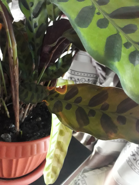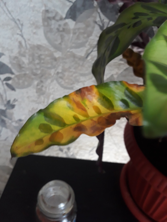 SOS! Помогите цветику!подарили мне калатею.стали появляться желтые пятна на листьях.от чего и как помочь цветочку?